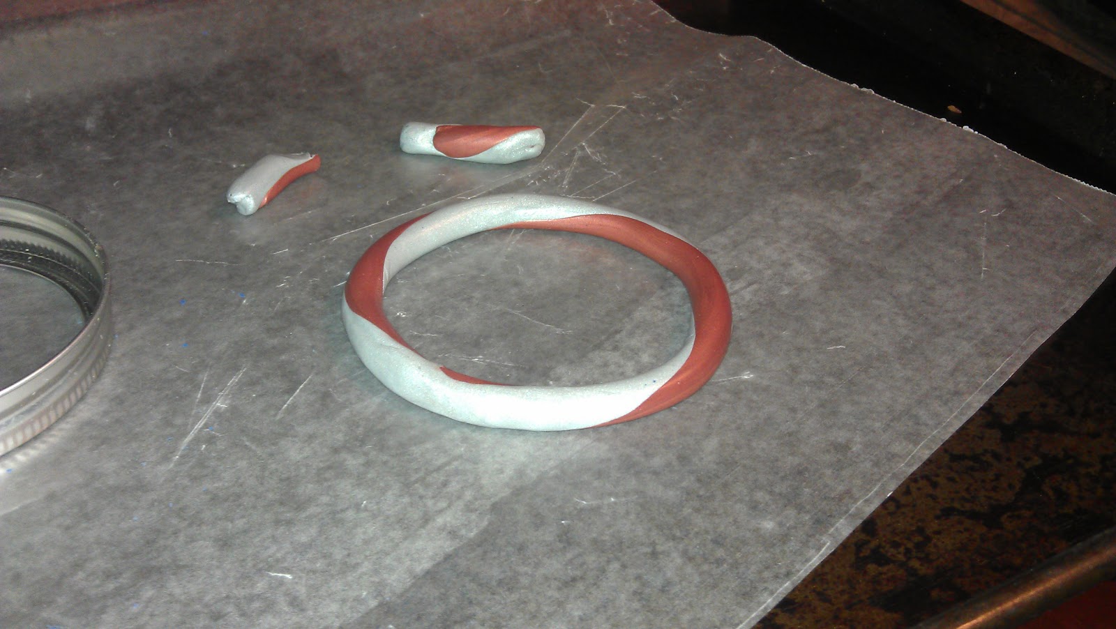 My aunt was having trouble finding bangles she liked so we decided that making them would be a good plan.We picked up some baking clay from Hobby Lobby while they were on sale 40% off (they are normally $1.99).